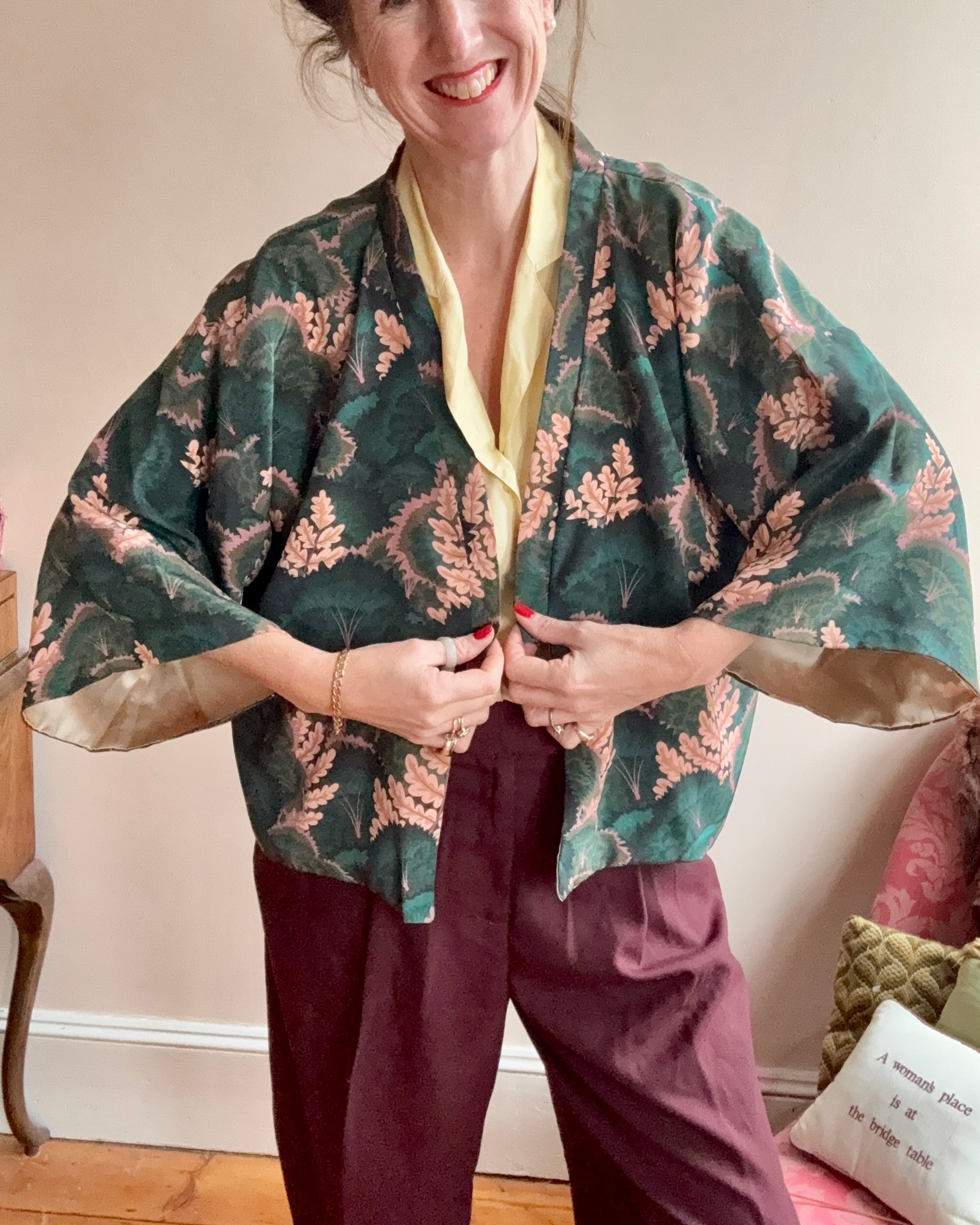 Exquisitely luxurious feel. Light and soft. Great as a smart light jacket or worn casually with jeans. Truly exceptional print and delicious cream lining.
