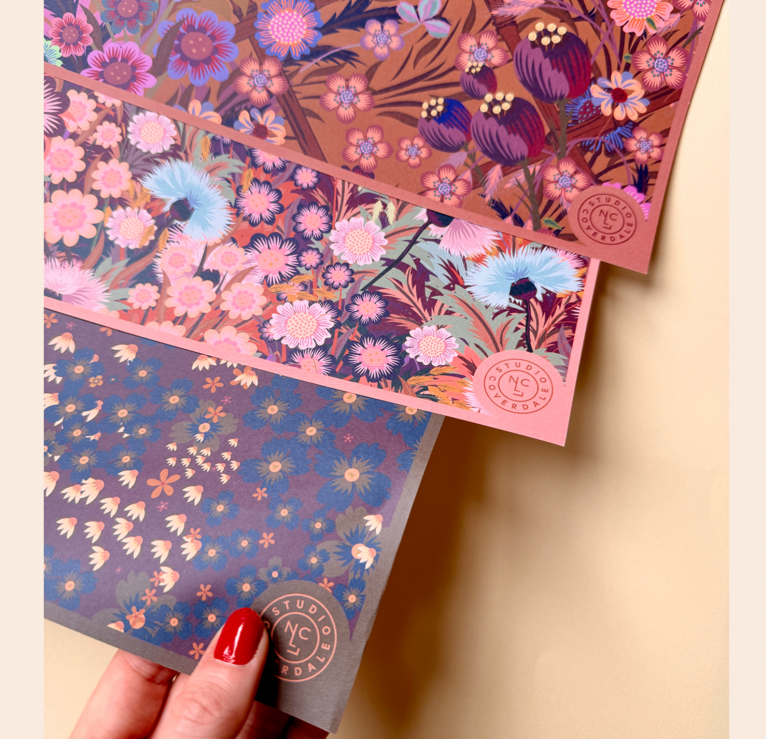 A seasonal selection of floral patterned wrapping paper perfect to play and decorate with.
